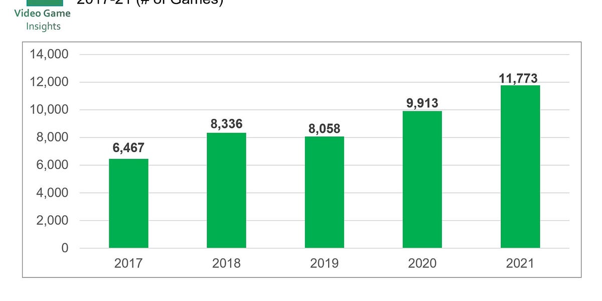 The numbers speak volumes. The chart above tracks the annual release counts on Steam, where the majority of new titles are indie productions. Over the past five years, more than 43,000 games have been launched—that’s roughly 23 new titles each day. In 2021 alone, the daily average jumped to over 30. And this figure doesn’t account for mobile app stores, itch.io projects, or countless homemade games. When you consider these sources, the total number of new games becomes staggering, illustrating a market saturated with effort and ambition.